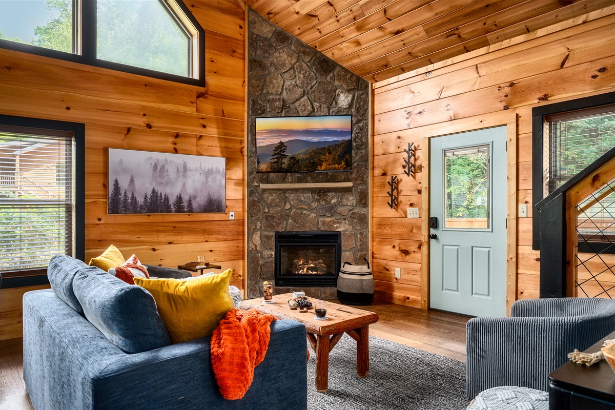 * Main level living room w/ gas fireplace (OctβMar) & Smart TV