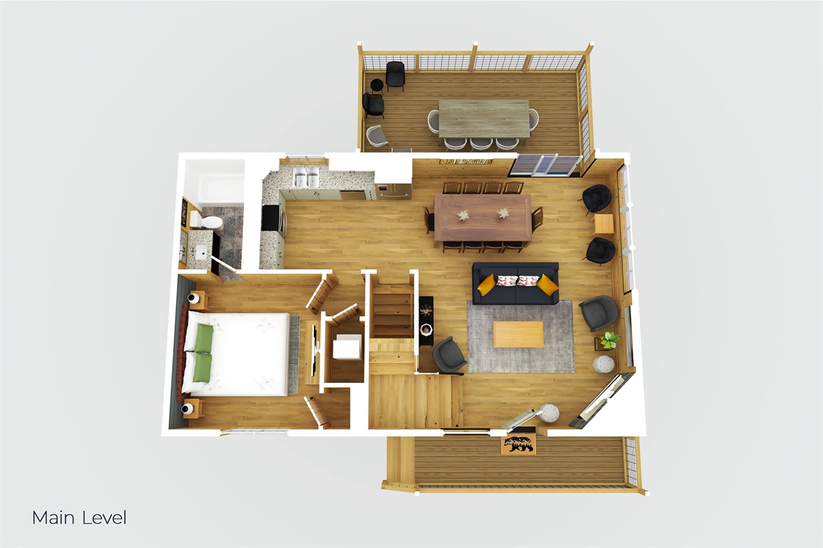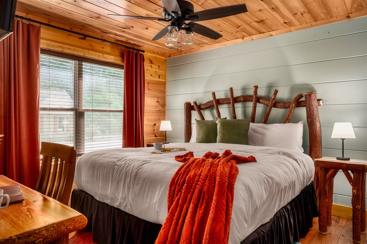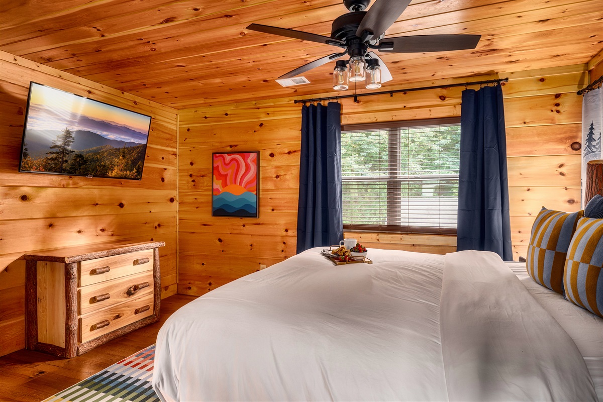 * Main-level suite: King bed, full en-suite bath, Smart TV