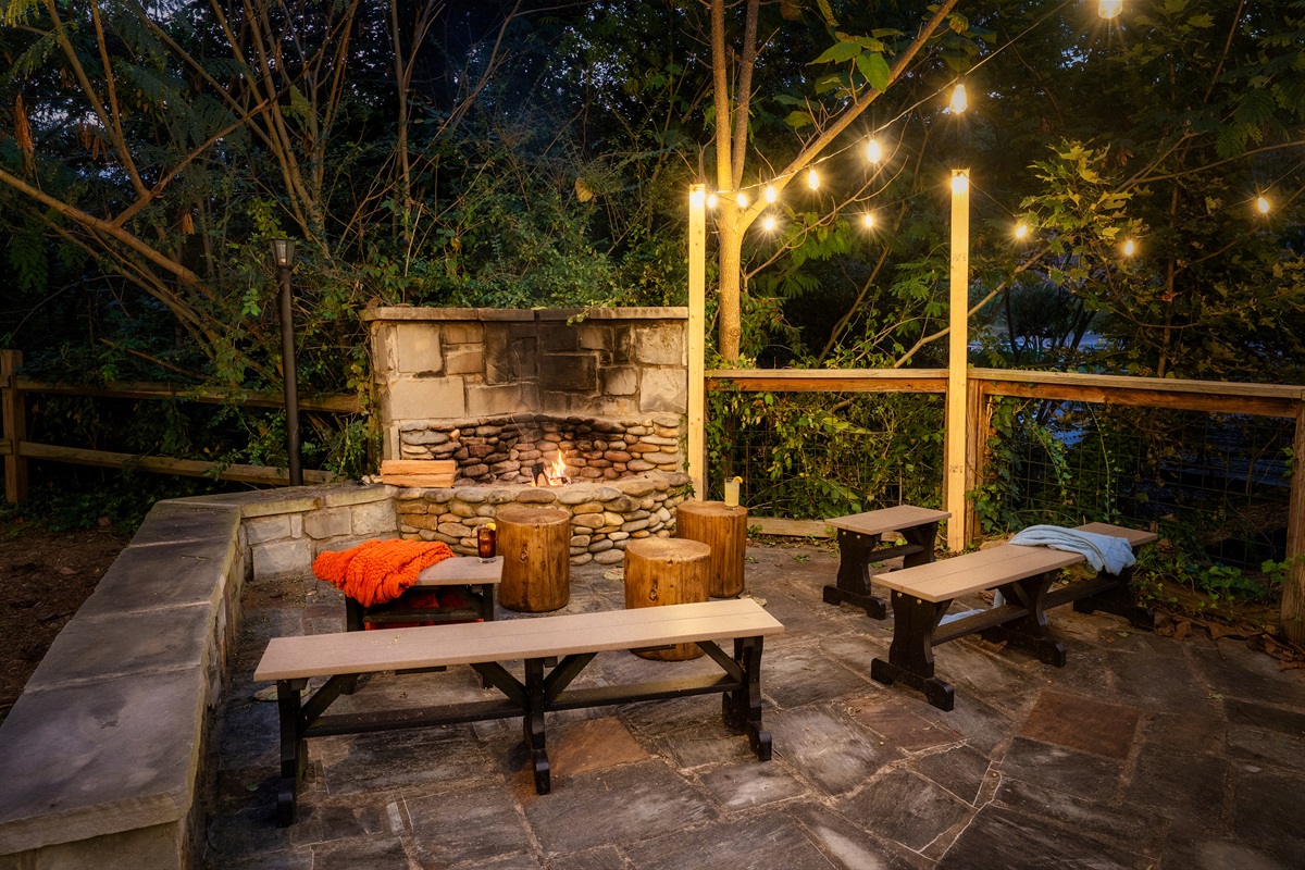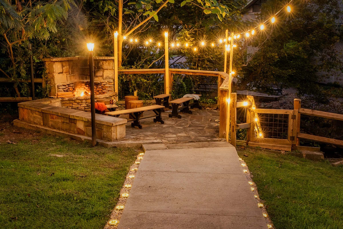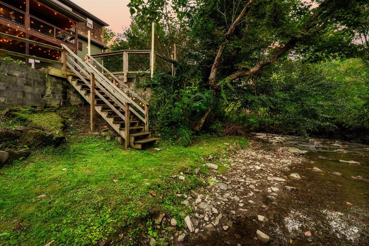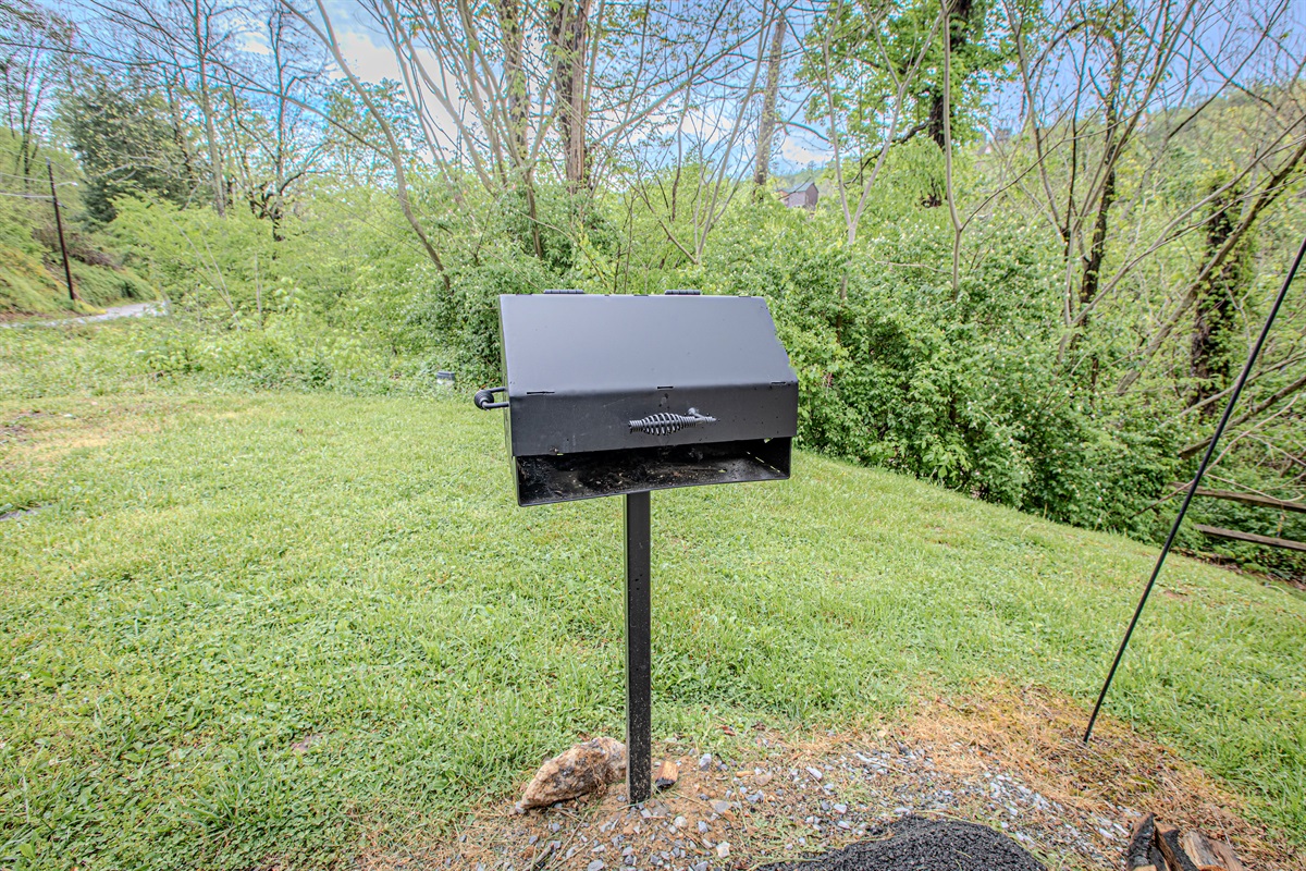 * Yard w/ fire pit (beside the creek!) & charcoal grill