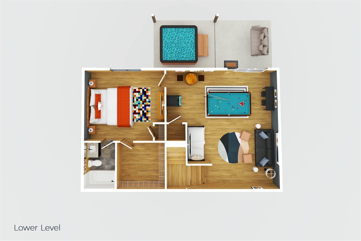 * Lower-level suite: King bed, full en-suite bath, Smart TV