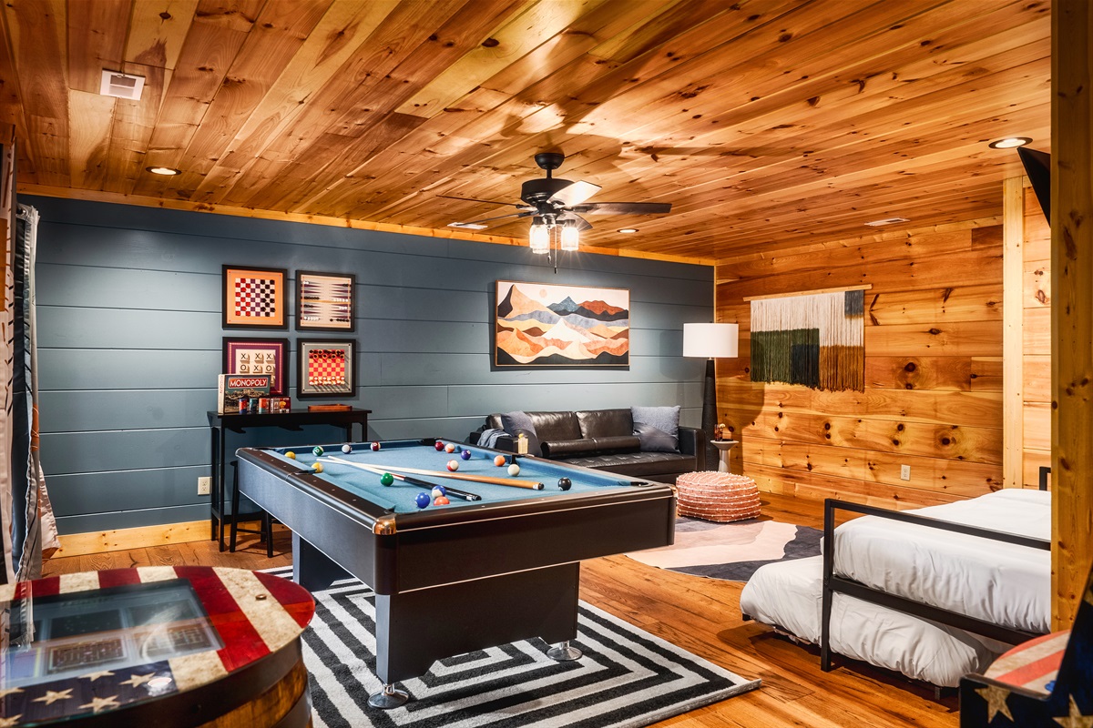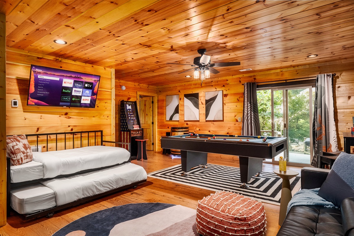 * Game room w/ pool table, arcades, & theater setup (3 recliners)